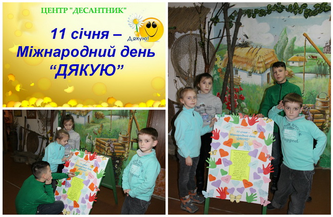 11 січня в рамках відзначення Всесвітнього дня "Дякую", який відзначається за ініціативою ООН та ЮНЕСКО, у Центрі військово-патріотичного та спортивного виховання молоді «Десантник» провели тематичний флешмоб. Під час заходу всі могли висловити подяку, виражаючи зичливість та повагу своїм тренерам, педагогам, колегам та рідним.