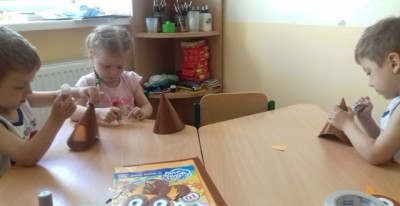 Діти використовували кольоровий картон, клей, ножиці, заготовлені макети різної форми та розмірів.