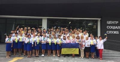 До святкування Дня Прапора долучилися і працівники Центру соціальних служб Святошинського району міста Києва, які влаштували флешмоб перед будівлею Центру.