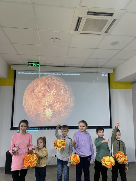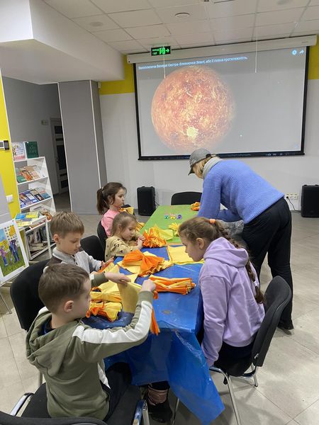 Пізнавальна зустріч завершилась майстер-класом, який провела для дітей керівник творчої студії «Чарівник» Вікторія Леонідівна Остапенко. Під її керівництвом діти створили яскраву планету Венеру.