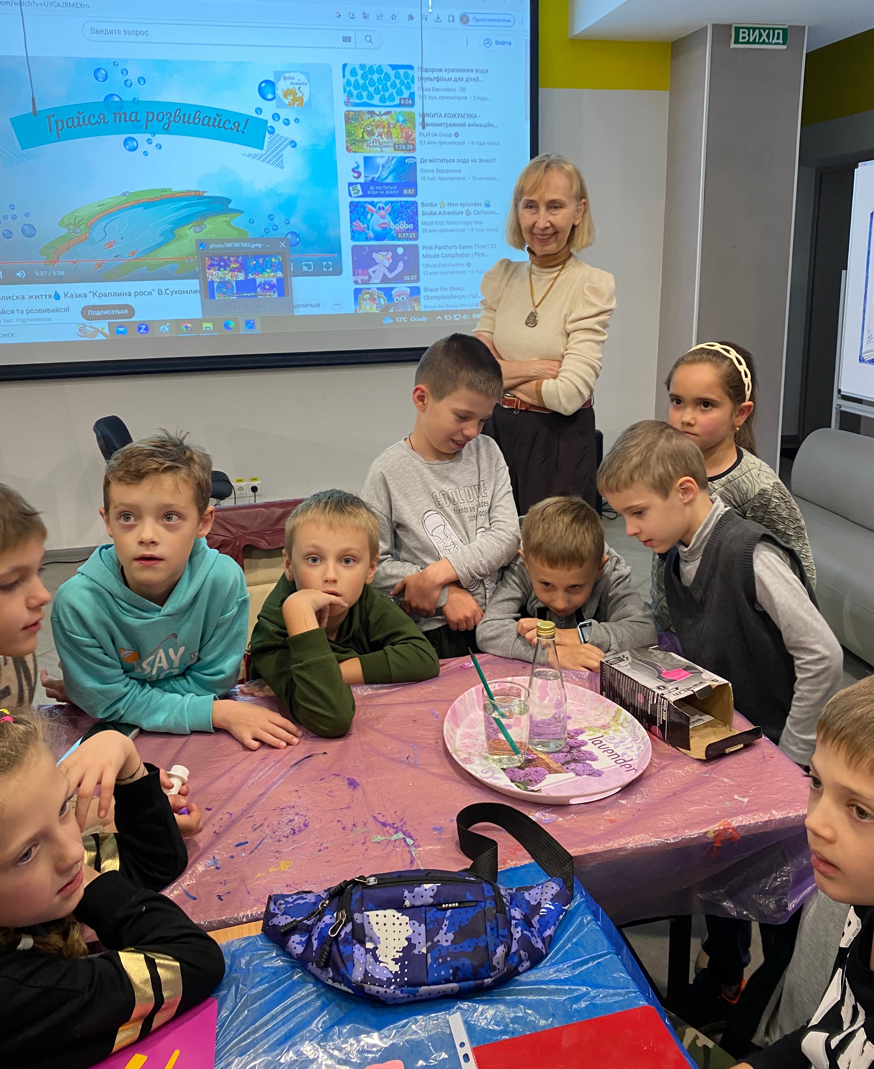 Новий сезон у бібліокосмознайок розпочався змістовно та весело. За допомогою директорки Київської філії Національного центру аерокосмічної освіти молоді ім. О.М. Макарова Віри Головащук розгадали безліч загадок, які надійно приховує космос! На черговому занятті співробітник Київської філії Національного центру аерокосмічної освіти молоді ім. О.М. Макарова Леонід Печенін розповів дітям про кругообіг води. Цікава розповідь та перегляд відеоматеріалів про безперервний замкнутий процес переміщення води на земній кулі, що відбувається під впливом сонячної радіації і дії сили тяжіння, перетворила заняття на справжню наукову конференцію, а цікаві досліди - дітей на науковців.