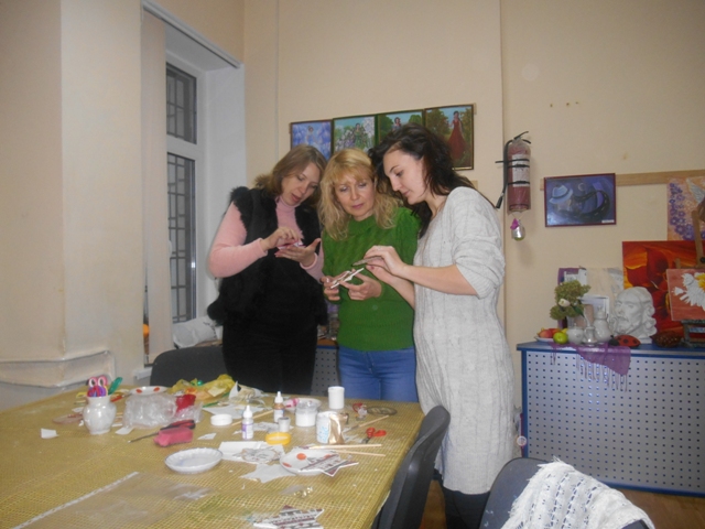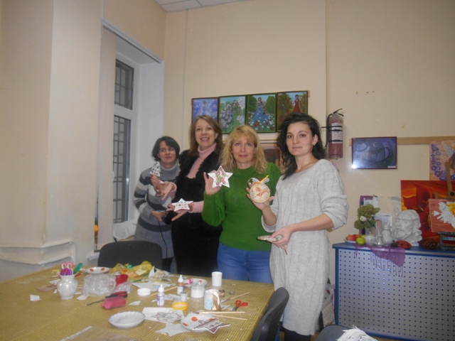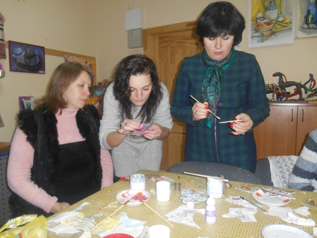 2 грудня в підлітковому клубі «Сокіл» для педагогів-організаторів було проведено майстер-клас по виготовленню ялинкових прикрас у техніці декупаж. Провела майстер-клас керівник гуртка образотворчого мистецтва «Фантазія» Анна Андріївна Бойко.