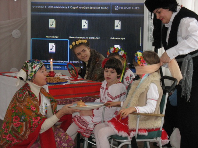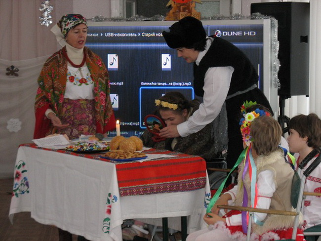 На початку свята ведуча розповіла дітям про українські народні звичаї і традиції, що сформувалися протягом багатьох століть. На передодні старого Нового року святкують Щедрий Вечір – веселе народне свято з багатою кутею, з різноманітними стравами, веселими забавами, музикою, танцями, обрядовими іграми з масками, радісними та веселими щедрівками. Святкування українців вражає своєю яскравістю, неповторністю символіки й атрибутики. І хоча сьогодні ці традиції збереглися лише в далеких селах, у відділенні соціально-медичної реабілітації дітей створили атмосферу давнього свята, показавши вистави про святкування Щедрого Вечора.