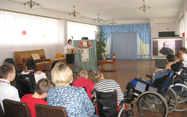 Діти відділення прослухали „Заповіт” та пісні на слова Т.Г. Шевченка „Зацвіла в долині червона калина”, „Зоре моя, вечірняя”. Вихованець закладу Власенко Дмитро прочитав уривок вірша „Огні горять, музика грає...”. Діти розглянули малюнки Кобзаря – „Автопортрет”, „Селянська родина”, „Катерина”, „Казашка Катя”. Присутні переглянули відео „Дитинство Тараса” та „Обличчя української історії”.