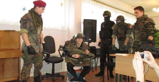 23 лютого вітають батьків, дідусів, братів, всіх тих, хто служив у лавах Радянської армії, хто несе службу в Українській армії зараз. День Захисника Вітчизни уособлює такі прекрасні людські якості, як доблесть і мужність. Фактично воно є святом усіх чоловіків, чиє головне покликання – обороняти рідну землю. Це свято символізує любов і повагу українців до своїх захисників і визволителів, до тих, хто сьогодні стоїть на варті незалежної держави. На захід завітали учні 11 класу гімназії № 287, які представляли Страйкбольну команду „Єгермейстер”. Завдяки їх участі у проведенні пізнавального заходу, наші діти розширили свої знання про військову справу, зброю, комуфляж воїнів-захисників, атрибути військового солдату.