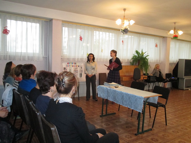 З доповіддю перед аудиторією виступила практичний психолог Київського міського територіального центру Медведєва Н.В., яка в доступній формі для слухачів розповіла про прийом та методи створення психологічної атмосфери в колективі. Після чого запропонувала цікавий тест для визначення особистісних якостей людини, а також надала відповіді на запитання слухачів.