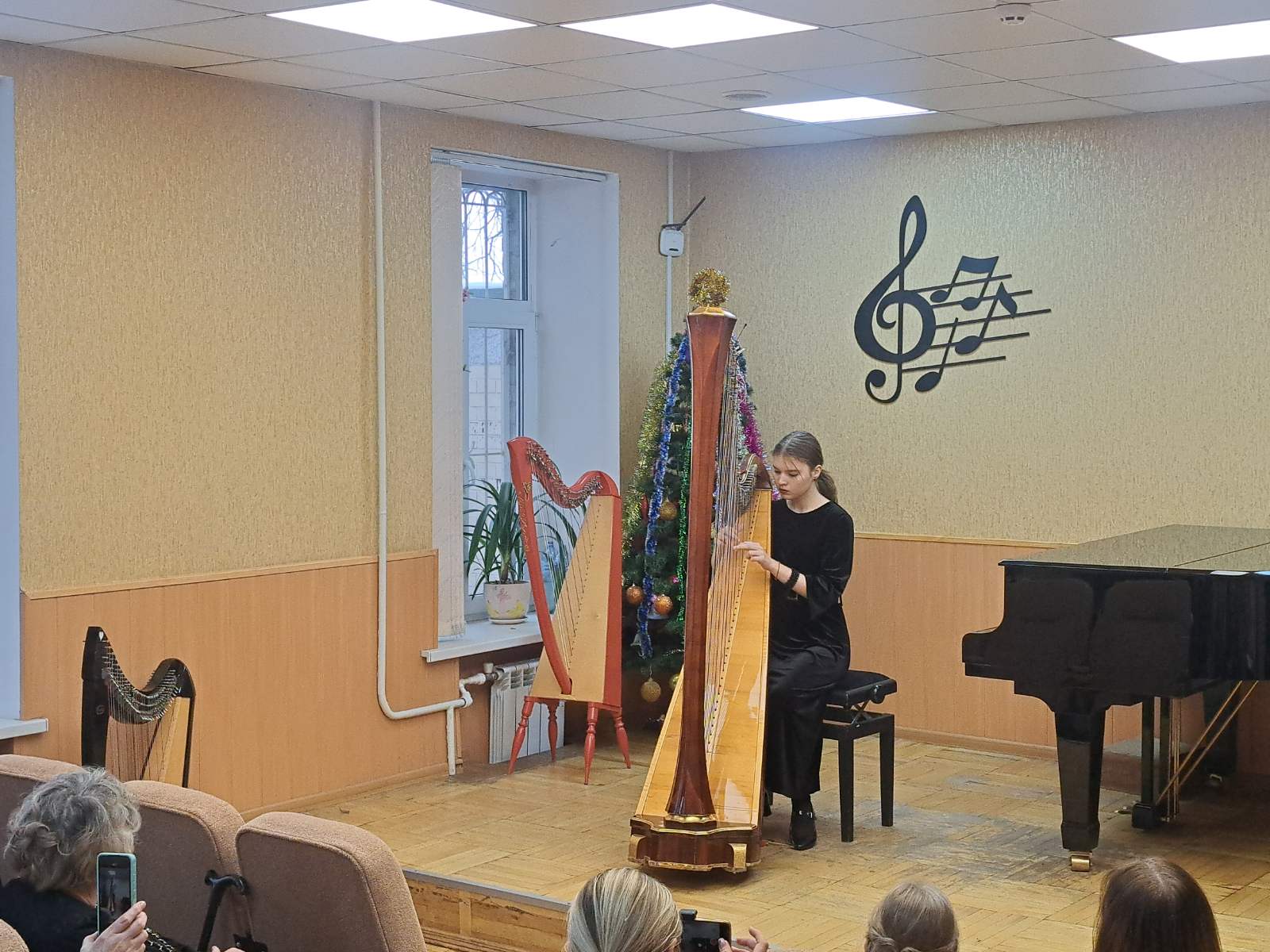 Учениця класу арфи Київської дитячої музичної школи №23 Лебедєва Аліна викладача Тетяни Заріцької взяла участь у міському концерті-лекції «Арфові у акварелі», який проходив 14 грудня у концертному залі Київської дитячої музичної школи №15 імені В.Г. Щигловського та відбувся в межах мистецько-просвітницького проєкту «Різдвяна вітальня Наталії Ізмайлової». Аліна продемонструвала майстерність, виразне та емоційне виконання складного твору А. Анре «Акварелі».