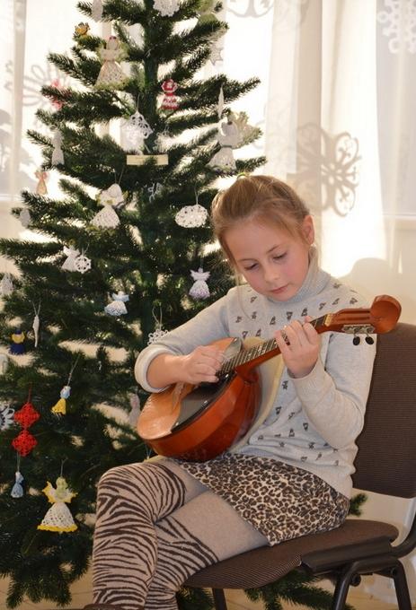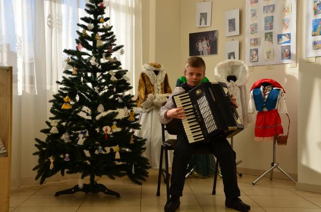 Юні музиканти створили радісний, новорічний настрій. Свої яскраві виступи дарували слухачам: бандурист Іван Оверченко (викладач Мар’яна Олександрівна Загребельна), домристка Катерина Гранат (викладач Ірина Миколаївна Хейленко) та акордеоніст Денис Брунь (викладач Юлія Валеріївна Лисенко), який ще й майстерно читав вірші-побажання. Учні- музиканти виконали цікаві твори та варіації на теми українських народних пісень («Добрий вечір тобі, пане господарю», «Ой, лопнув обруч», «Веселий зайчику», «Варенички»).
