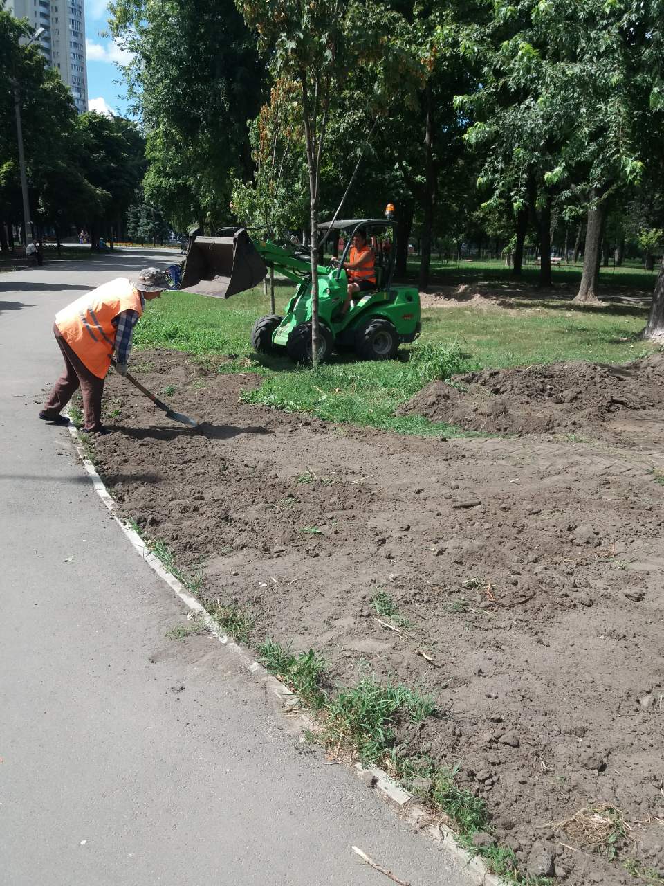 Щоб зробити парк імені Генерала Потапова ще більш комфортним та затишним, працівники КП УЗН Святошинського району постійно проводять благоустрій цього зеленого куточка і наразі активно виконують улаштування газонів.