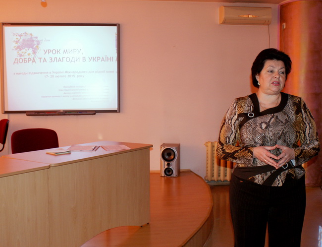 Цікавим і сучасним був “Урок миру, добра та злагоди в Україні”, що провела доповідач для заступників, ( слухачі у ньому брали активну участь), який вони відзначать з 17 – 20 лютого з нагоди Міжнародного дня рідної мови у своїх колективах.