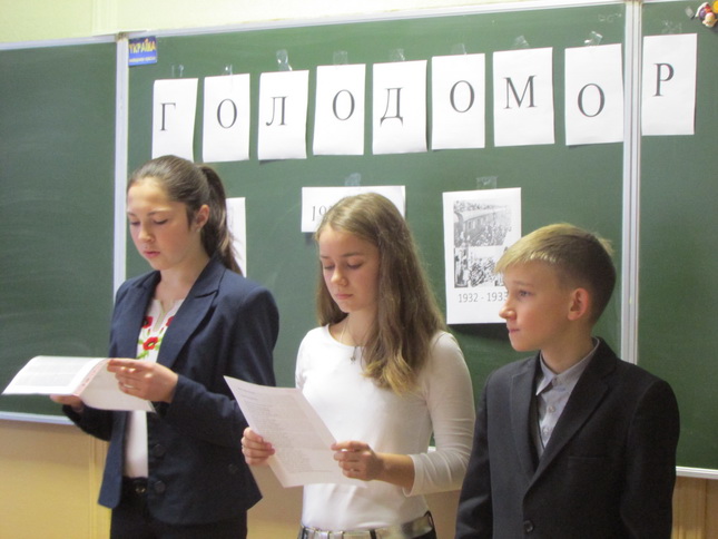 Під час Уроку учні переглянули документальні фільми про трагічні події 1932-1933 рр. та 1946 р., ознайомились з жахливою інфографікою смертності та народжуваності в 1932-1933 р.р., зачитали спогади людей, які пережили ті стражденні і згорьовані роки.