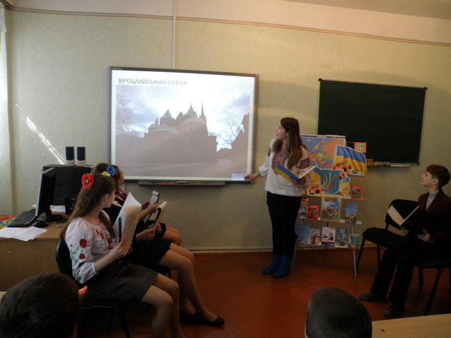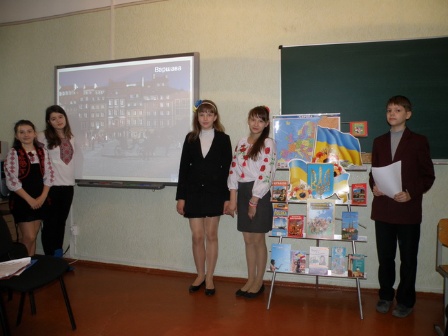 Школярі з захопленням вирушили у віртуальну подорож невідомою країною. Дізналися про особливості культурного, суспільного, освітнього життя своїх сусідів-поляків, їх традиції, досягнення, здобутки. Дітей вразили своєю середньовічною красою найстаріші міста Польщі, природні дива країни, туристичні цікавинки. Учні відповіли на запитання вікторини про Польщу і з задоволенням роздивилися виставку з путівниками, картами і фотографіями цієї країни. По закінченню усіх глядачів євроклубівці пригостили справжніми польськими цукерками і запросили у наступному році продовжити подорож країнами Європи.