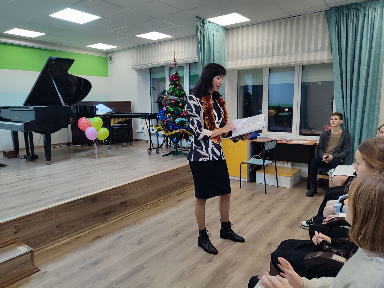 На фортепіанному відділі (завідувачка відділом Наталія Триліська) влаштували концерт-виставу «Новорічна феєрія». Вела та підготувала це неймовірне дійство викладачка відділу Тетяна Калашникова. В ньому звучали всім відомі новорічні хіти, такі як «Щедрик», «Свята ніч». Виконувалися українські народні пісні («Ой на горі сніг біленький») та пісні українських авторів (В. Івасюк — «Я піду в далекі гори»). Звучали тут і поліфонічні твори, п'єси композиторів-класиків та п'єси сучасних авторів. Словом, це був сплеск різноманітних емоцій, які подарували нам маленькі виконавці: