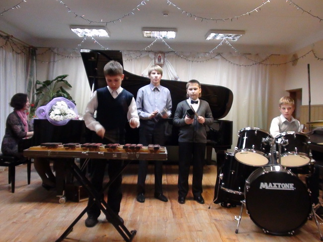 У концерті були представлені різні ударні інструменти та їх можливості. Маленькі, але вже справжні музиканти демонстрували свій потенціал, це - Максімов Данііл, Мацюк Веніямін, Хмельничий Святослав, Щегель Андрій, Давидюк Марк, Реутенко Олександр. Були виконані твори різних жанрів від класиків до сучасності: «Танець» Дмитра Кабалевського, «У похід» Григорія Компанійця, «Пісня друзів» Генадія Гладкова, «Бурлеск» Юрія Іщенка, «Магічний вальс» Амедео Томазі, «Джазовий етюд» Мілана Дворжака, «Пісня про ведмедів» Юрія Зацепіна, «Don't worry be happy» Bobby McFerrin.