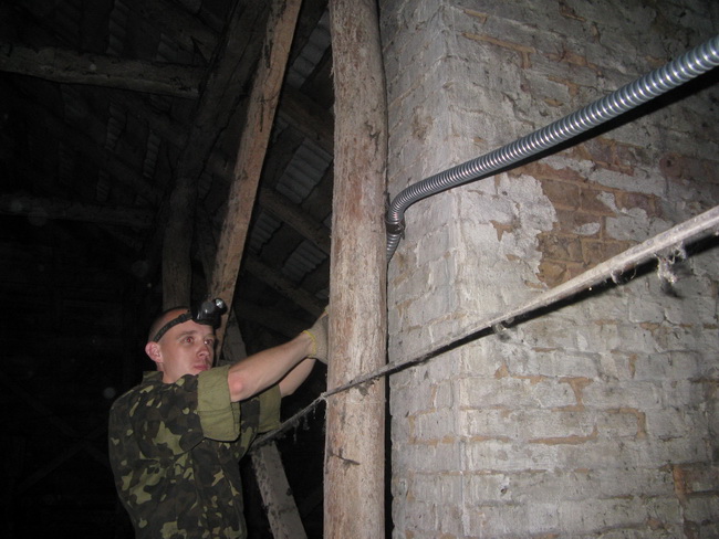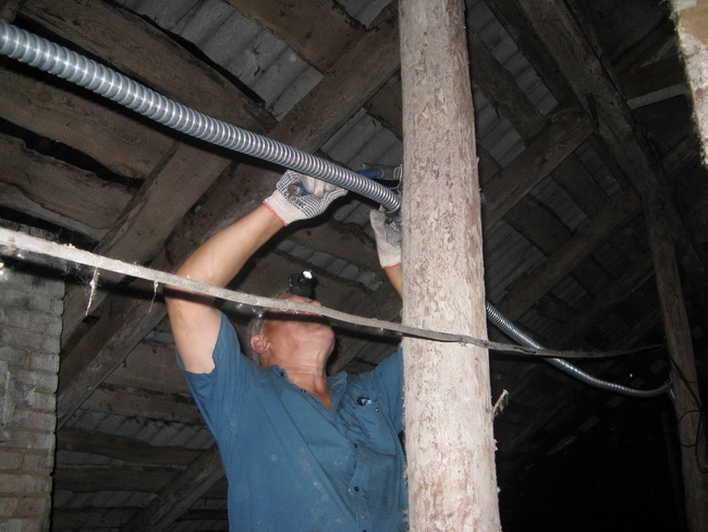 Електромонтери КП «РЕО – 9» ізолювали електрокабель в 25 метрову гофровану трубу на даху житлового будинку.