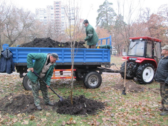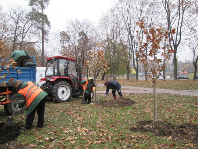 Щоб парк на вулиці Феодори Пушиної був ще зеленішим та мав більш цікавий естетичний вигляд, працівники комунального підприємства «По утриманню зелених насаджень Святошинського району» наприкінці минулого робочого тижня висадили 20 молодих дерев катальп, платанів, дубів та горобин. А також цей об’єкт прикрасили 50 декоративних кущів форзиції, чубушнику, сніжноягіднику та спіреї.