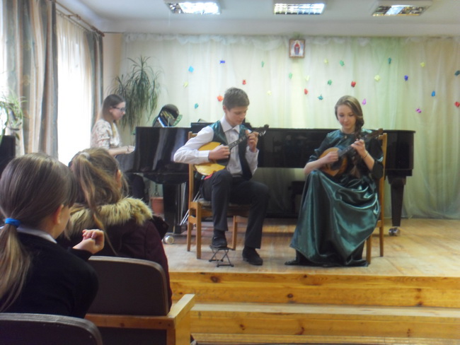 Концертні номери прозвучали у виконанні учнів музичної школи: дуету «Сестер Адріани та Мідеї Наруцькі», Ірини Кравченко, Дар’ї Максимчук та Ірини Кожевнікової, Меланії Куліш, Тетянки Білоус, Богдана Павлюченка, Олесі Стельмах, Софії Харченко та Олександра Ющенка, Ольги Лісовської, Едуарда Томільченка та вокального ансамблю «Ангельорус» (художній керівник Тетяна Стефанишина), Аліни Крилової (фортепіано), Олени Мартиненко і Олексія Говраса (домра).