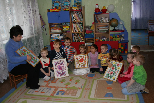 В групі № 2, свою творчість презентували декілька родин. Дітей ознайомили з декоративно - прикладним мистецтвом, наочно продемонстрували матеріали для творчості: фарби, пастелі, пензлі, акварельні олівці та ін. Діти з задоволенням спробували відтворити елементи петриківського розпису на тарілках. Також, бабуся з групи № 2 презентувала свої вишиті картини та плетені серветки, продемонструвала різні техніки вишивки, залучаючи дітей до творчості.