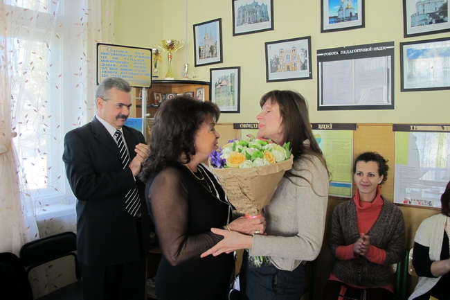 А на початку педради колектив педагогів щиро привітав голову батьківської ради освітньо-виховного комплексу Нечипоренко Наталію, мати п’ятьох учнів цього закладу, із присвоєнням їй почесного звання «Мати-героїня».
