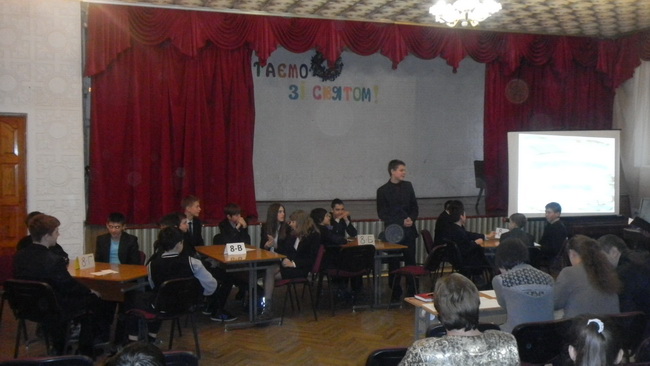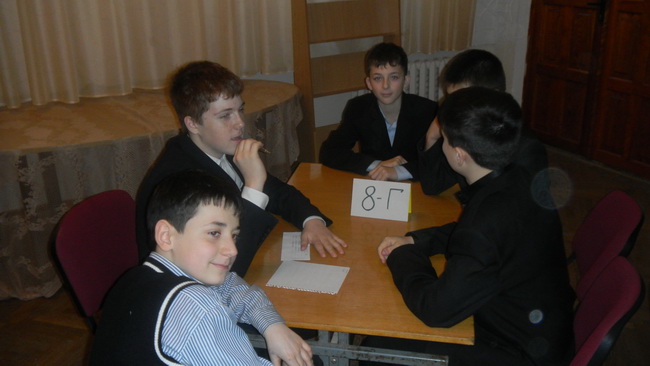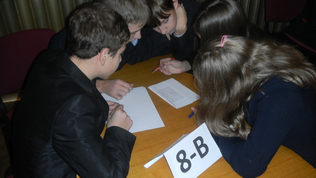 А вже за годину до залу ввійшли восьмикласники. У них розпочиналася “Подорож морями інформатики”. Ніби чотири крейсери, вирушили команди чотирьох восьмих класів. Нелегкою була ця мандрівка: здолати далекий шлях, гострі рифи складних завдань, зуміти знайти правильний напрямок у путі, бути витриманим – все було необхідне у подорожі. Шість турів змагання пройшли команди разом зі своїми уболівальниками. Керманичами у подорожі були учителі інформатики Ж.В. Коба та В.В. Корженко. Журі визначило переможців. Ними стала команда 8-В класу.