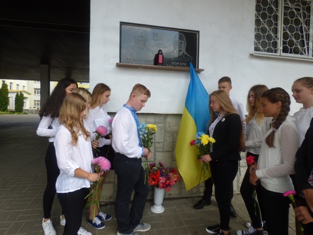 23 серпня, напередодні Дня незалежності України, учні та вчителі спеціалізованої школи №304 поклали квіти до пам’ятного знаку загиблим випускникам школи – Корзуну Роману та Розналевичу Юрію.