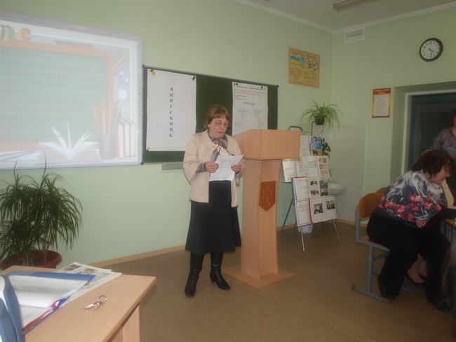 З доповідями виступили вчитель української мови та літератури Ващенко Н.К., голова МО вчителів кафедри математики Клименко Т.В., вчитель фізики Кабула В.П., вчителі англійської мови Гринець М.В., Чепурна О.В., вчитель історії Морозюк Ж.Б., вчитель музики Полєвая О.Г., вчителі початкової школи Бублій Н.О., Грущенко Т.П., Крюкова Т.М., Федіна Т.П.