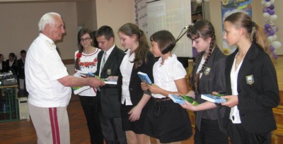Анатолій Русак відповів на питання, що цікавили як школярів, так і педагогів, а на прощання вручив у подарунок кожному класу закладу свою авторську книгу, присвячену партизанам і підпільникам України часів Великої Вітчизняної війни, закуплену за сприяння мецената Віктора Олександровича Білича.