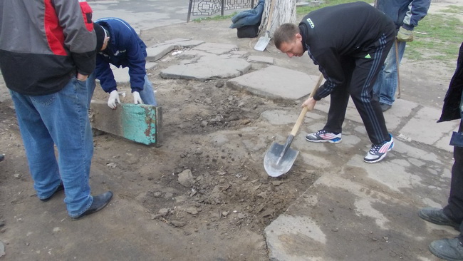 Поряд з фахівцями, що проводили кронування дерев, мешканці зайнялися висадкою квітів, дерев та кущів.
