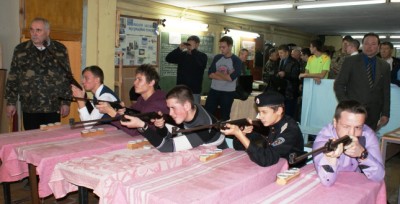 Під звуки похідного маршу команди вийшли із зали і розійшлися по місцях безпосередніх змагань за напрямками: стрільба, розбирання та складання автомата Калашникова, спорядження магазину набоями. Головним суддею змагань був Анатолій Маліньков, викладач предмету “Захист Вітчизни”.