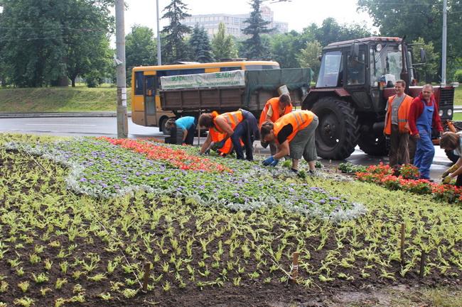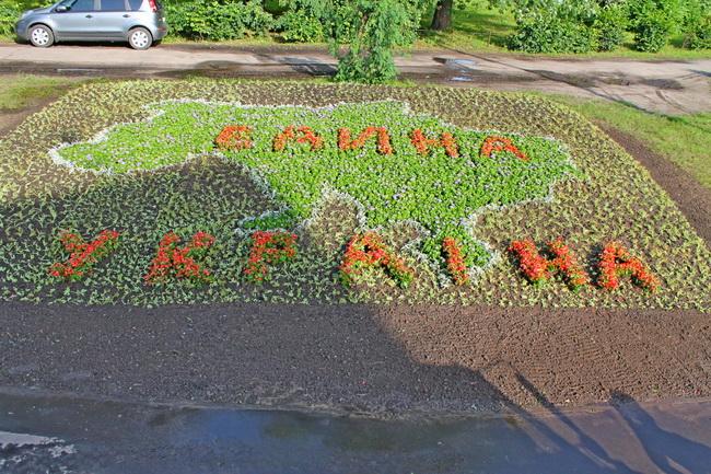 На головній клумбі на Європейській площі квітами буде висаджено напис «Єдина країна».