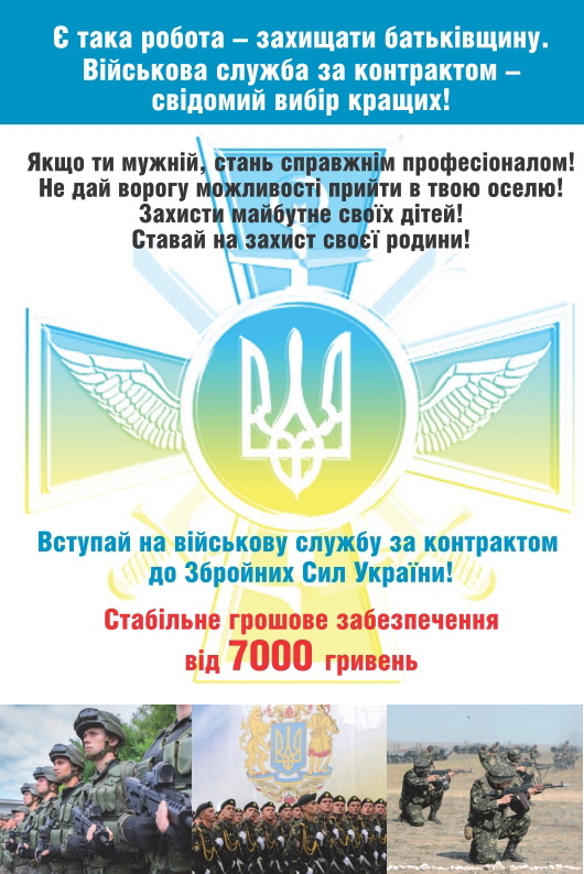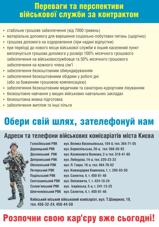 В Святошинському районі активно проводиться інформаційна кампанія щодо інформування населення про переваги військової служби в Збройних Силах України за контрактом.