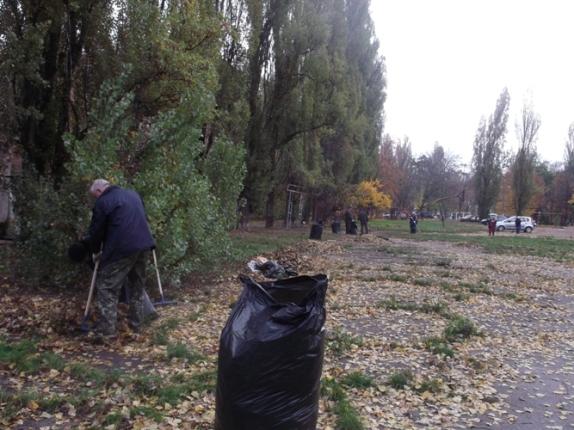 У Святошинському районі відбувся суботник з благоустрою, що проходив у рамках осіннього місячника з благоустрою, озеленення та поліпшення санітарного стану міста.