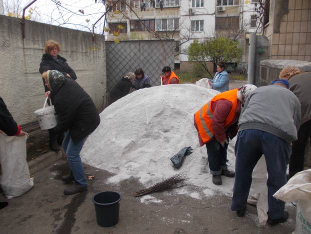 Працівниками технічних дільниць заготовлено та розподілено по прибудинкових територіях піщано-сольову суміш, для подальшого використання під час ожеледиці та снігових опадів.