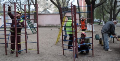 впорядковують дитячі майданчики, зокрема проводять роботи з фарбування.