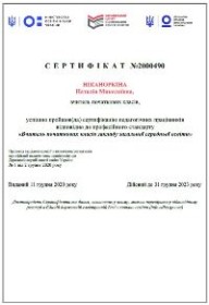 Вовна Ліна Василівна, учитель 1-В класу, і Ніканоркіна Наталія Миколаївна, учитель 2-Б класу, на етапі вивчення практичного досвіду показали надзвичайно високі результати – по 97 балів із 100 можливих. 11 грудня 2020 року вони отримали сертифікати про успішне проходження сертифікації педагогічних працівників відповідно до професійного стандарту «Вчитель початкових класів закладу загальної середньої освіти».
