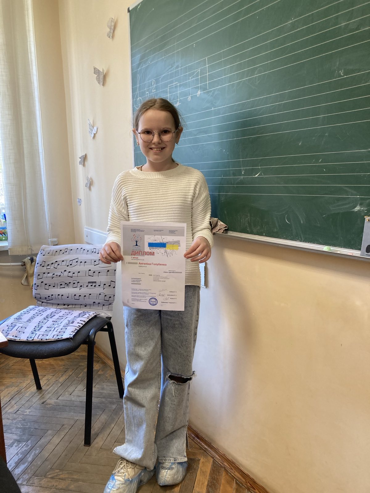 Учениця Київської дитячої музичної школи № 23 Ангеліна Голубенко навчається на вокально-хоровому та фортепіанному відділах, але свої творчі здібності розкрила як знавець музично-теоретичних дисциплін.