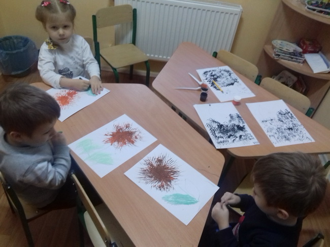 На сьогоднішньому занятті вихованці Центру працювали у незвичайній для них техніці, свої картини вони малювали за допомого виделки. Діти із задоволенням опанували нове вміння та тішили нас своїми творіннями.