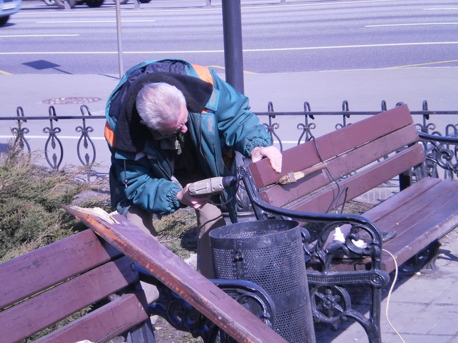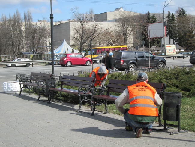 Працівники комунального підприємства по утриманню зелених насаджень Святошинського району в весняний період вже провели ремонт, фарбування та встановлення відремонтованих 30 лав у парках імені Генерала Потапова, на вулиці Феодори Пушиної, в сквері по вулиці Котельникова, 26-32, по бульвару Вернадського та по проспекту Перемоги, 97.