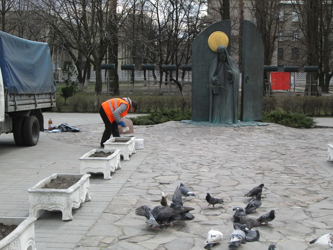 Паралельно встановили та привели після зими до ладу, а саме пофарбували, квіткові вази по проспекту Перемоги, 97.