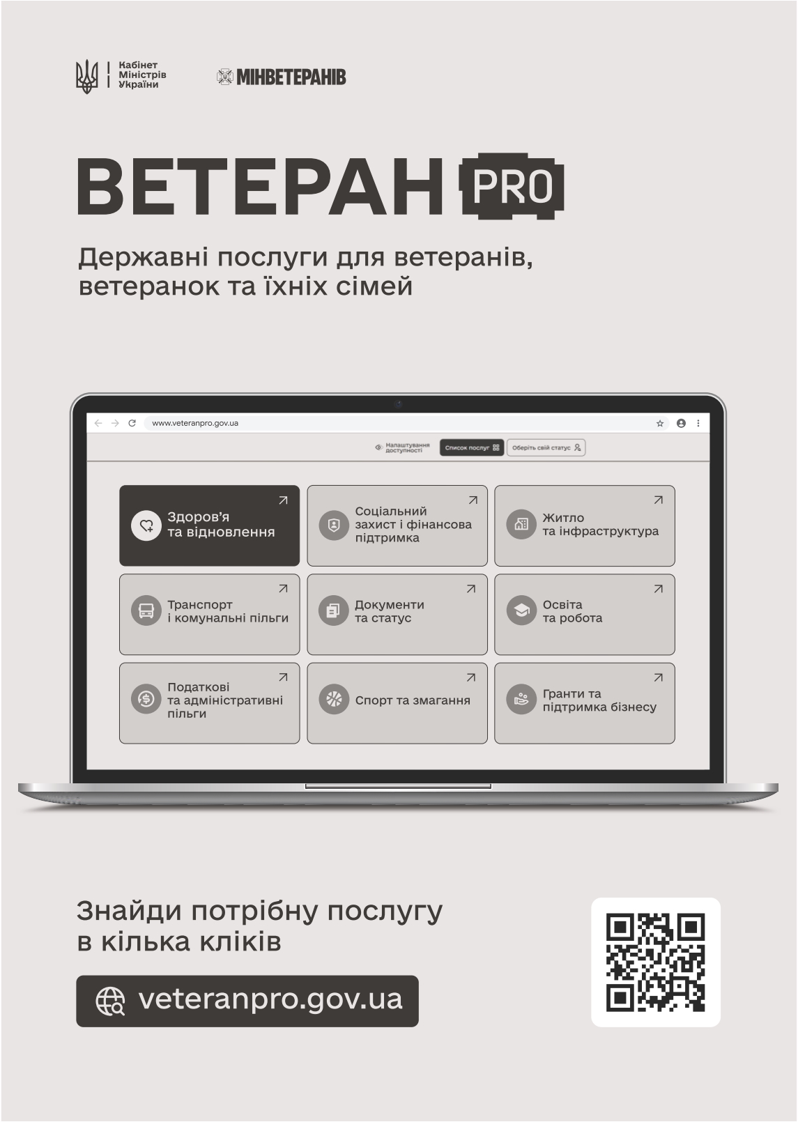 Більше не потрібно шукати інформацію про пільги, програми чи допомогу на десятках сайтів, все тут veteranpro.gov.ua