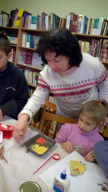 В рамках проведення акції відбулось багато цікавих заходів для дітей з багатодітних родин. Своїм талантом та вміннями виготовляти святкові листівки з природних матеріалів поділилась на черговому заході Олена Олександрівна Ратушная. Руки майстрині навчили учасників заходу перетворювати звичайні гречку, пшоно, рис та горох на яскраві вітальні листівки.