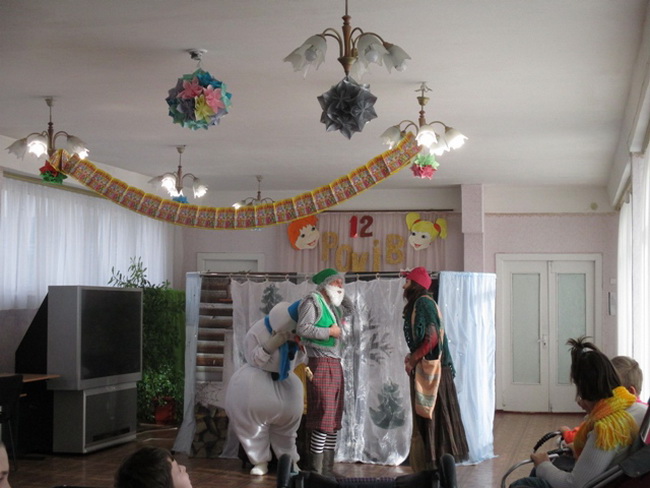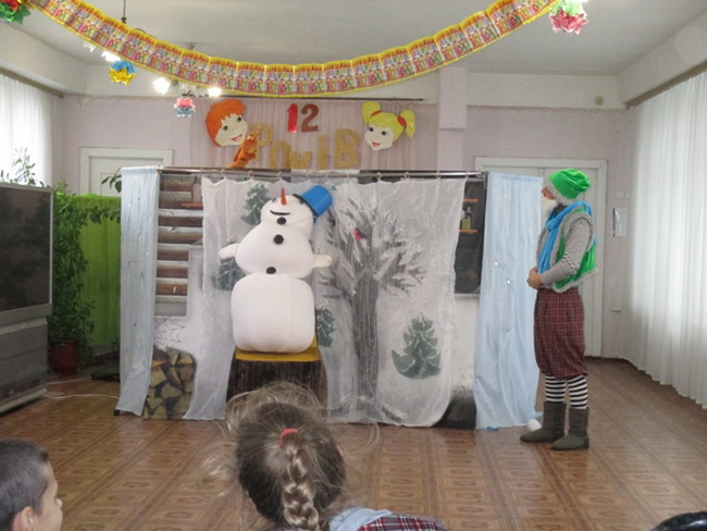 В гості на свято завітали давні знайомі закладу - актори Київського театру „Вояж-Престиж” з виставою „ День народження Сніговика”. Діти у захваті спостерігали за пригодами Сніговика, Лісовика та Білочки, яким хотіла зашкодити Баба Яга. Вистави театру завжди подобаються вихованцям, бо це свято, яскраве дійство, цікаві перетворення, бурхливі оплески та щирі усмішки. Театралізоване дійство діє на уяву дитини різними засобами: словом, дією, мистецтвом, музикою.