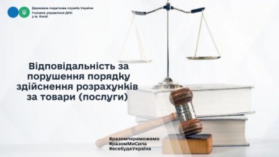 Головне управління ДПС у м. Києві нагадує, що на сьогодні, у зв’язку із прийняттям Закону України від 30 червня 2023 року № 3219-ІХ «Про внесення змін до Податкового кодексу України та інших законів України щодо особливостей оподаткування у період дії воєнного стану» відновлено відповідальність за порушення порядку здійснення розрахунків за товари (послуги).