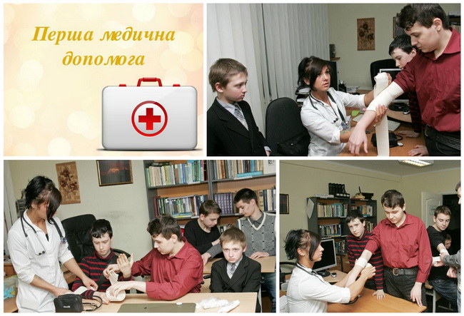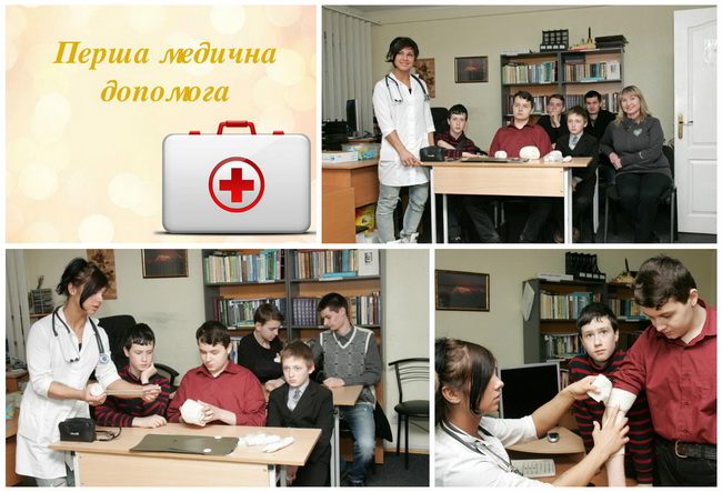 Цього разу заняття були спрямовані на надання першої допомоги постраждалим. Лекція проводилась з використанням мультимедійних засобів, супроводжувалась показом відеофільму, презентацією слайдів. Окрім теоретичної частини також проводились практичні заняття по накладенню пов'язок та використання гумового джгута. Кадети мали змогу ознайомитись з видами ран, навчились надавати першу допомогу при пораненні, накладати пов’язки.