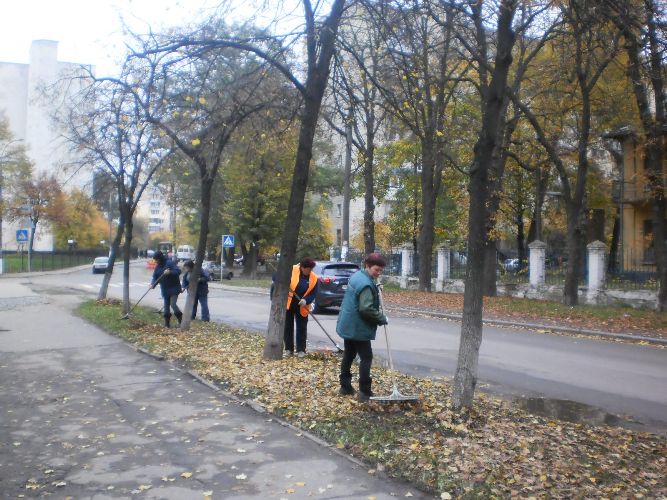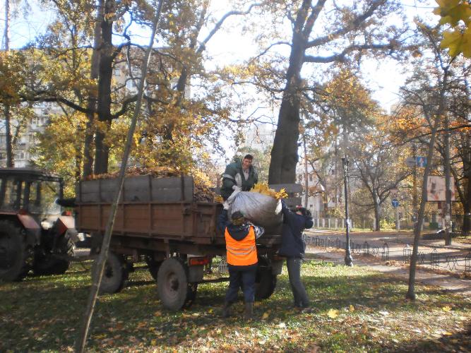 Протягом 24 жовтня 2013 року працівники Комунального підприємства по утриманню зелених насаджень Святошинського району, в період осіннього місячника по благоустрою, озеленення та поліпшення санітарного стану міста Києва, виконали ряд спеціалізованих робіт, спрямованих на підтримання належного стану підпорядкованих територій.