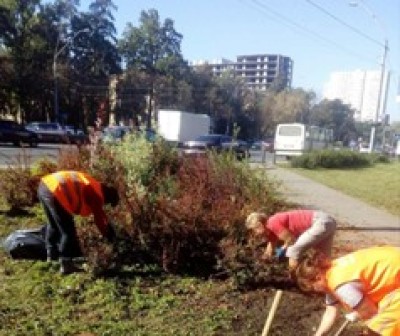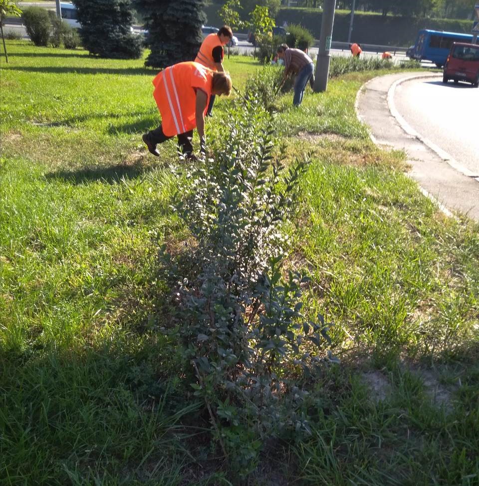 Озеленювачі КП УЗН Святошинського району провели чергові доглядові роботи за декоративними кущами на транспортній розв’язці на перетині проспекту Перемоги і Великої Кільцевої дороги та у сквері між вулицями Краснова і Семашка.
