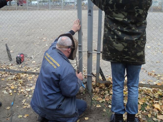 Електрозварювальником та працівниками ремонтної дільниці відремонтовано огорожу спортивного майданчика за адресою вул. Булгакова, 5-Б. Проводилось прибирання та підготовка для вивезення великогабаритних відходів з господарчого двору за адресою вул. Булгакова, 7.