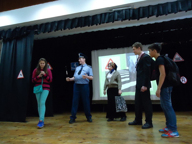 А учні 8-Г класу Головченко Олена, Колесник Вікторія, Ляхно Денис та Оношко Марина продемонстрували цікаві сценки із сучасного життя про порушників правил дорожнього руху, що стають причиною ДТП.