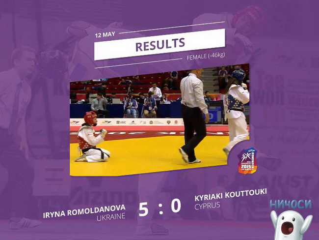 Лідер збірної України з тхеквондо Ірина Ромолданова увійшла в історію, завоювавши першу в історії України нагороду чемпіонату світу в цьому виді спорту. У Челябінську 20-річна Ромолданова, яка виступила в найлегшій вазі (до 46 кг) забезпечила собі медаль ще в першій половині дня, потрапивши до півфіналу світової першості.