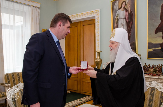 Метою зустрічі було обговорення співпраці у різних церковно-суспільних проектах Святошинського району міста Києва. Патріарх відзначив діяльність депутатів і за активне сприяння у відродженні храму на честь благовірного князя Олександра Невського на Галаганах, благодійницьку церковну діяльність у Святошинському благочинні м. Києва та заслуги з утвердження Помісної Української Православної Церкви, Святійший Владика нагородив Олександра Третьякова - Орденом святого архистратига Михаїла, а Вікторію Муху - Орденом святої великомучениці Варвари.